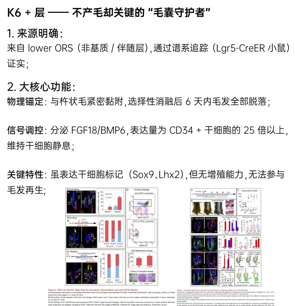 ·功能双重核心:K6 + 层并非 “无功能的分化残余”,而是 bulge niche 的关键组成部分: